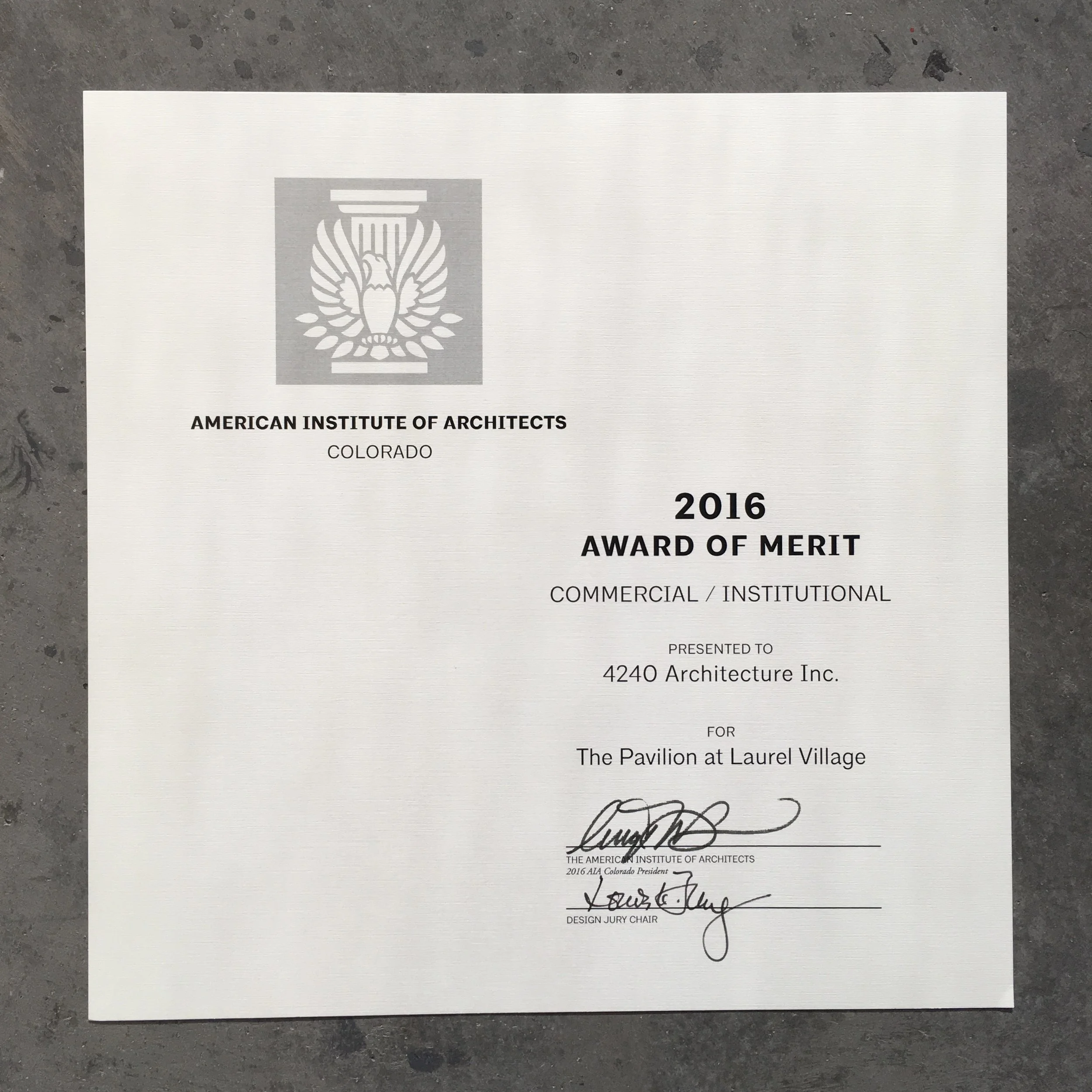 The Pavilion at Laurel Village has won the AIA Colorado Institutional Award.