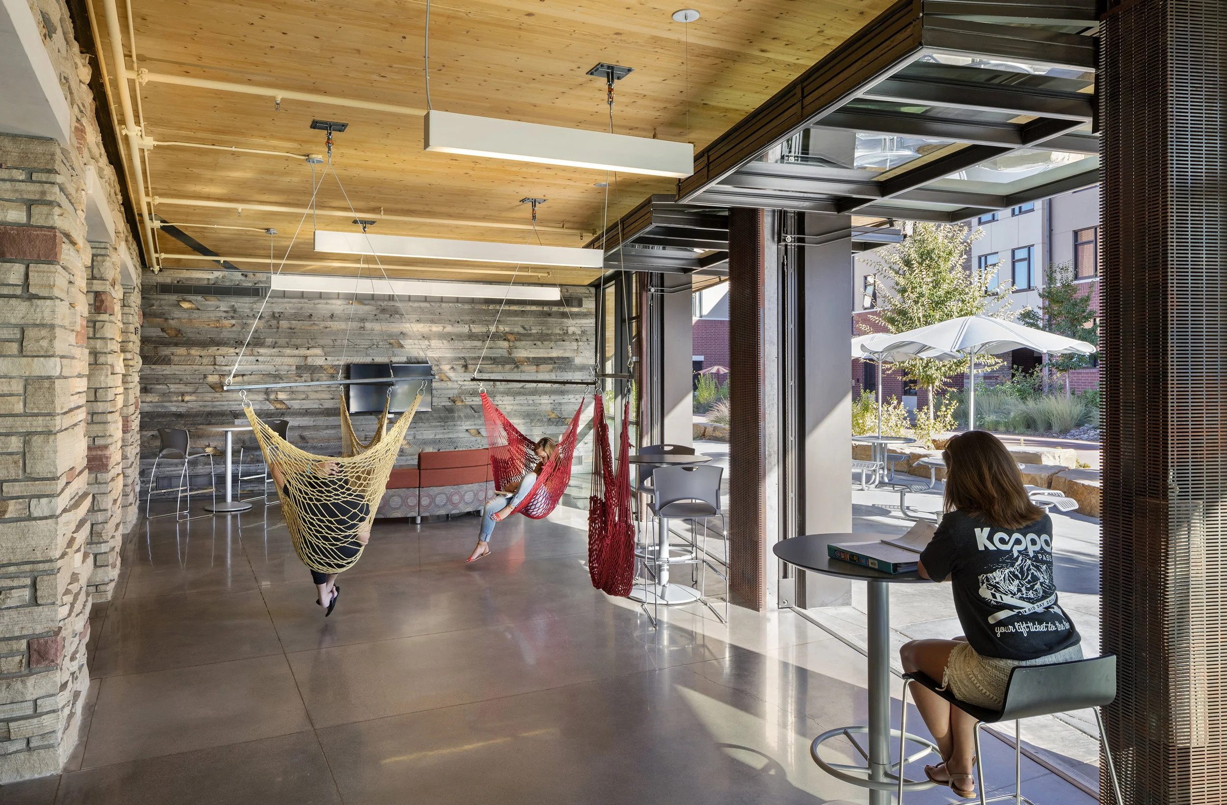 SCOPE: 11,500sf high performance sustainable building includes student-run bike shop, agora/gallery space, living slope; features a katabatic cooling tower; LEED Platinum